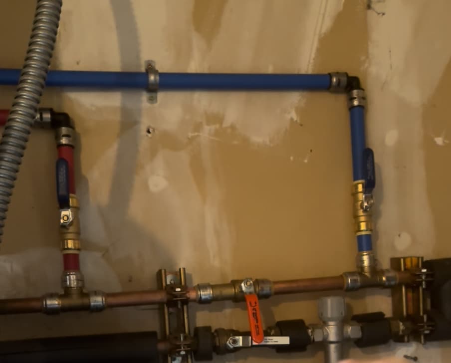 To connect the existing hydronic to the Hashrate House heat exchanger it was just a matter of adding a bypass loop before the cold input port on the tank and hooking up to the heat exchanger ports. That way new water coming into the tank as well as the water already in the tank will be passed through the exchanger.