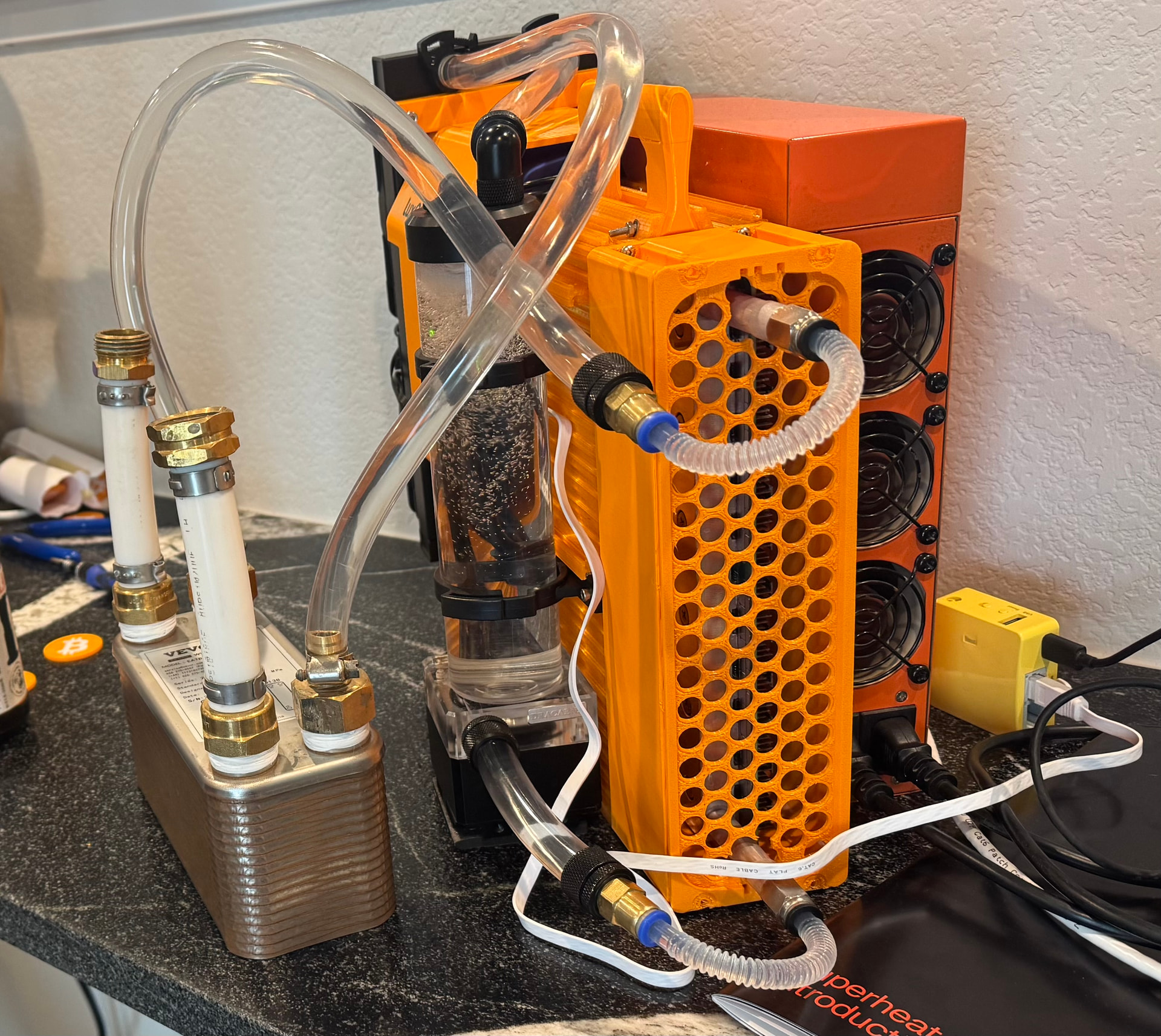 I replaced the heat sink on the hashboard with a Zeus Mining water block and used the Zeus mining push to fit adapters and 8mm OD corrugated tubing they included. I did need to find these fittings to go from the Zeus tubing to the standard g1/4 fittings that the PC hydro stuff uses.