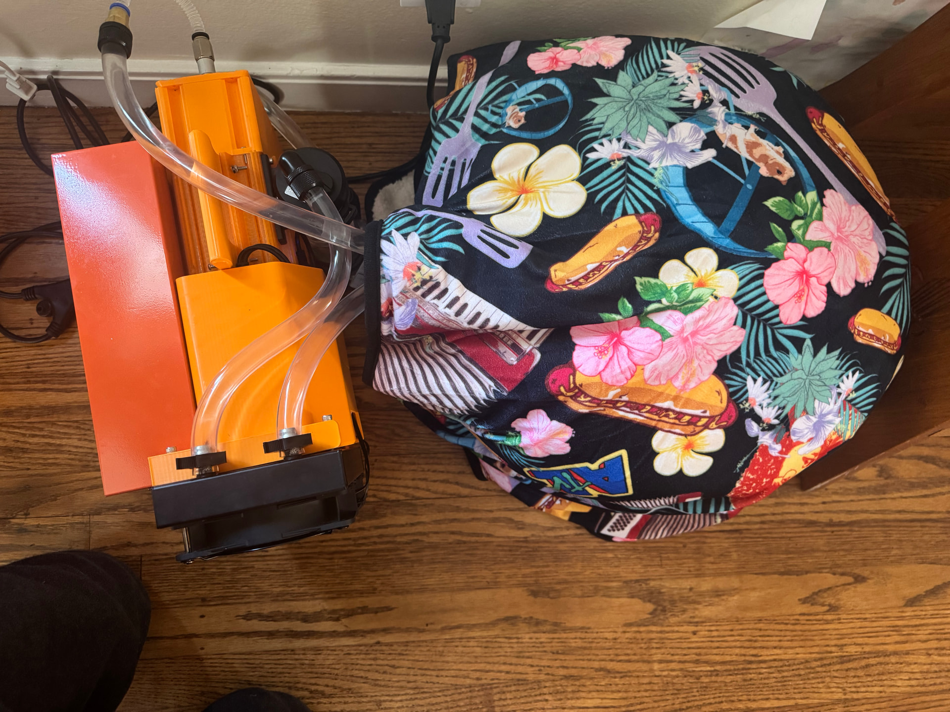I started with the mine4heat enclosure but realized I didn’t need the “flared” fan mounts but did need a place to attach the radiator, so I designed (hacked together) some custom parts: