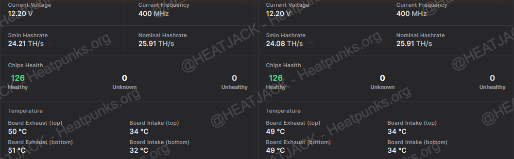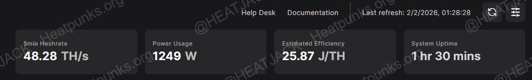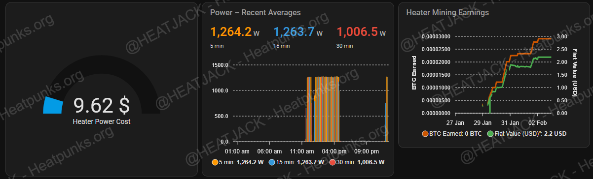 Miner stats, BTC network stats w/active “real-time heat rebate” stats that adjust to network, hashrate and power usage: